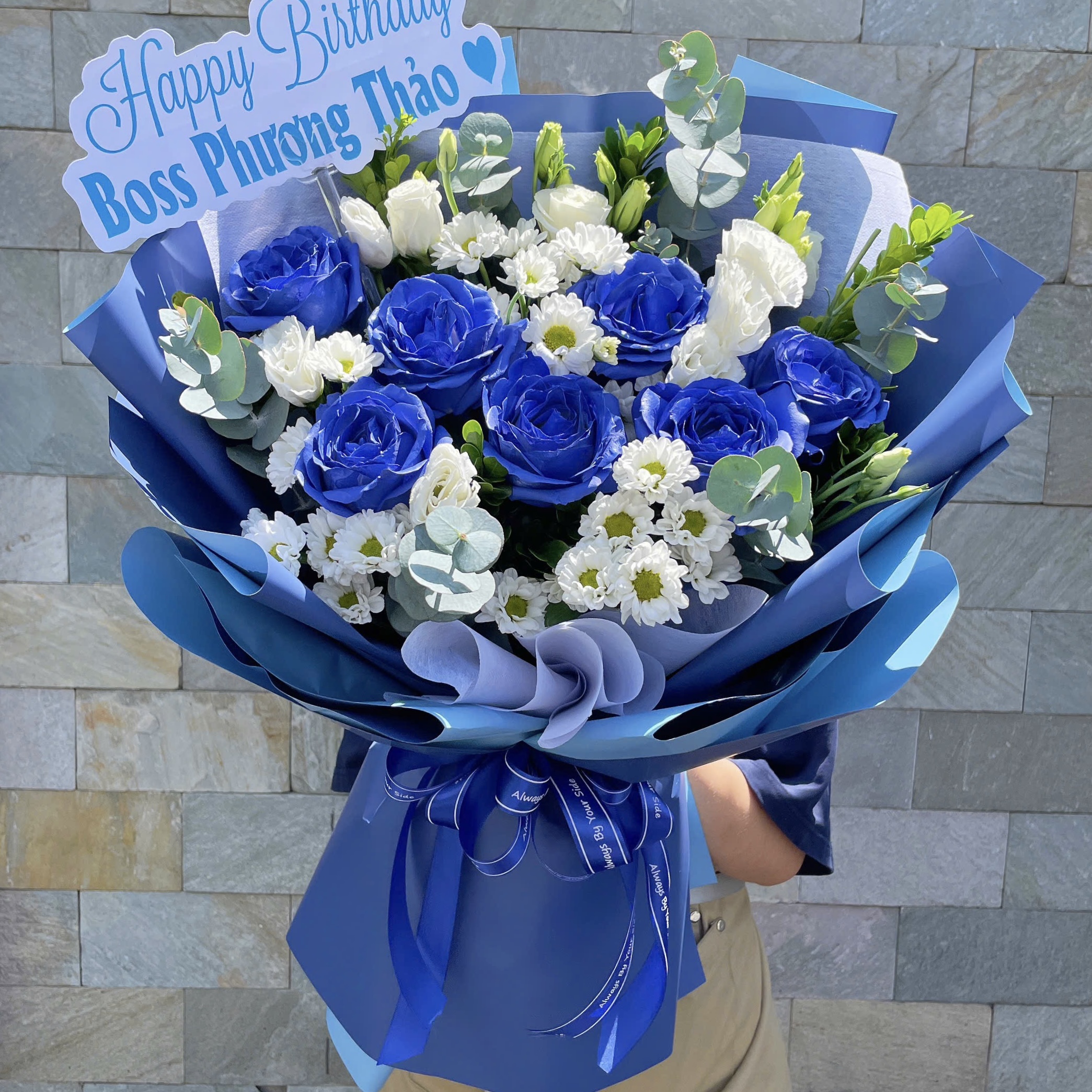 “ Kiêu Hãnh” là bó hoa được thiết kế với gam màu xanh – trắng sang trọng, độc đáo và nổi bật. Bó hoa toát lên khí chất mạnh mẽ, thanh lịch, phù hợp làm quà tặng cho các dịp đặc biệt, nhất là với đối tượng doanh nhân, quản lý, hoặc người có phong cách hiện đại.